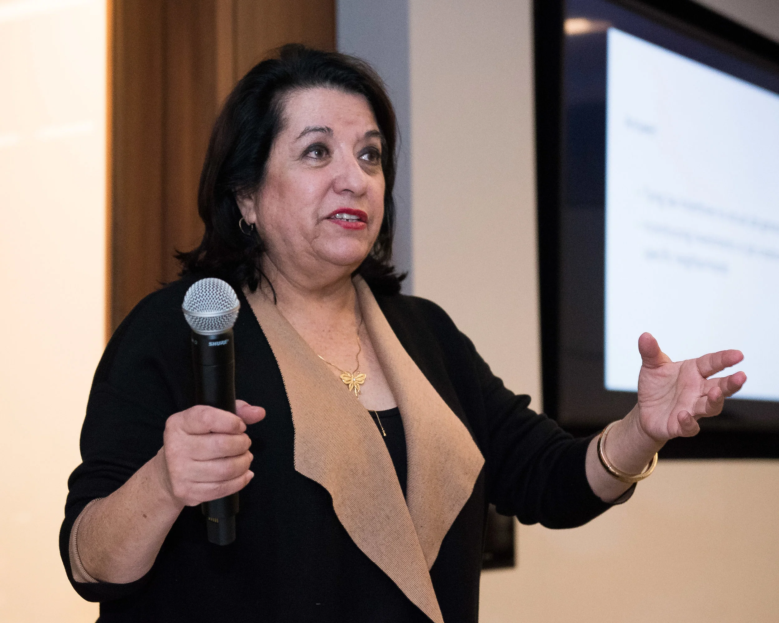 Dr. Rita Raichoudhuri presenting information around the importance of education and post-secondary planning for young people.